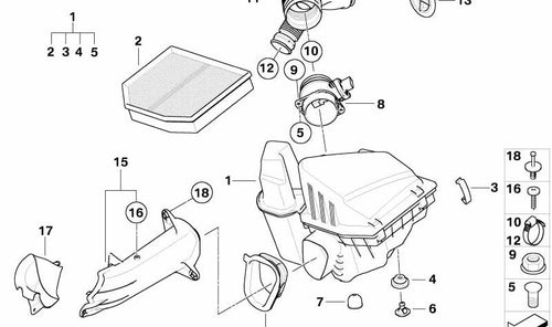 Conducto de admisión para BMW F07, F10, F11, F06, F12, F13, F01N, F02N (OEM 10104414). Original BMW.