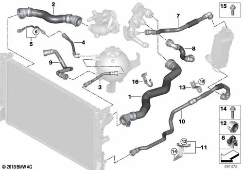 Manguera de enfriador de refrigerante desplazada para BMW G12, G12N (OEM 17127991454). Original BMW.