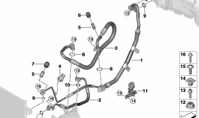 Tubería de Succión Evaporador-Compresor para BMW X5 G05, G06, X6 G06, X7 G07 (OEM 64536993263). Original BMW