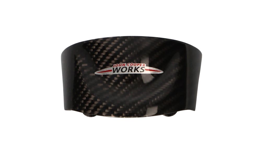 Embellecedor central en carbono para volante deportivo OEM 32302147228 para MINI R55, R56, R57, R58, R59, R60, R61. Con nuevo logotipo JCW. Original MINI.