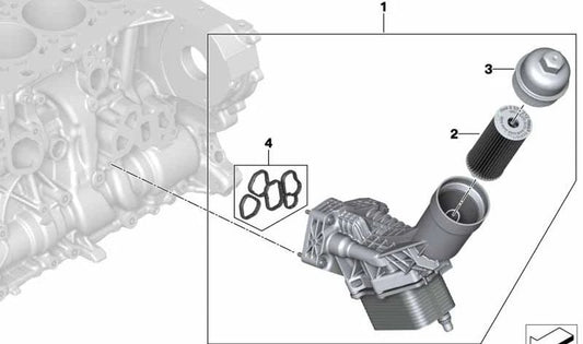 Juego de filtro de aceite para BMW E81, E82, E87, E88, E46, E90, E91, E92, E93, E60N, E61N, E84, E83, E85 (OEM 11427508969). Original BMW