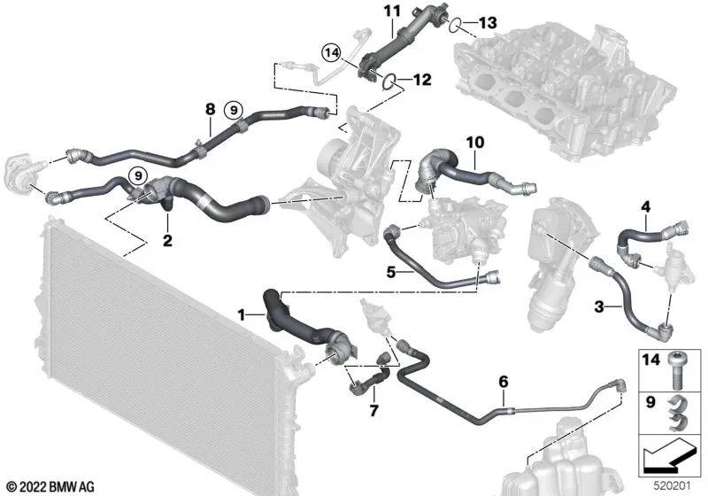 Doppelkupplungsübertragungsrohr für BMW 2 U06 -Serie, X1 U11, U12 (OEM 17125A0C5A6). Original BMW