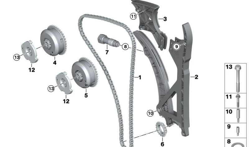 Einlassnockenwellen-Einstelleinheit für BMW E81, E82, E87, E88, F20, F21, E90, E91, E92, E93, F30, F31, F34, F35, F80, F32, F33, F36, F82, F83, E60, E61, F07, F10, F11, F18, E63, E64, F06, F12, F13, E65, E66, F01N, F02N, X1, X3, X4, X5, X6, Z4