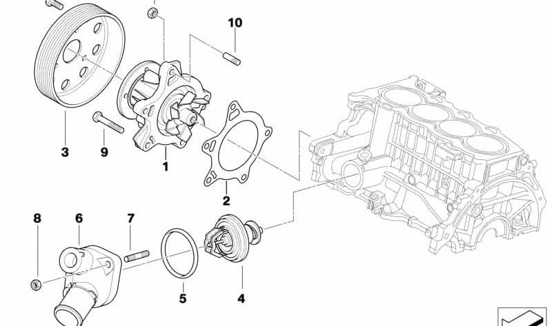 Polea de sistema de refrigeración OEM 11517799424 para MINI R50 One D (R5B1, R5B2) con transmisión manual y tracción delantera. Original MINI.