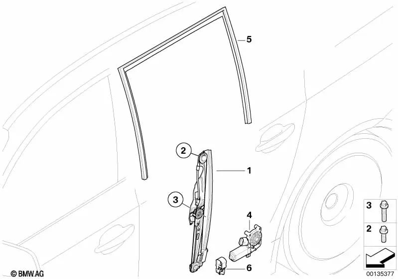 Rechte Heckscheibenführung für BMW E61, E61N (OEM 51357044182). Original BMW