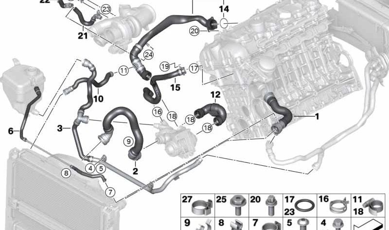 Der Heizungs-Termotat-Return-Schlauch ist ein originales BMW-Stück mit OEM-Referenz: 17127599454.