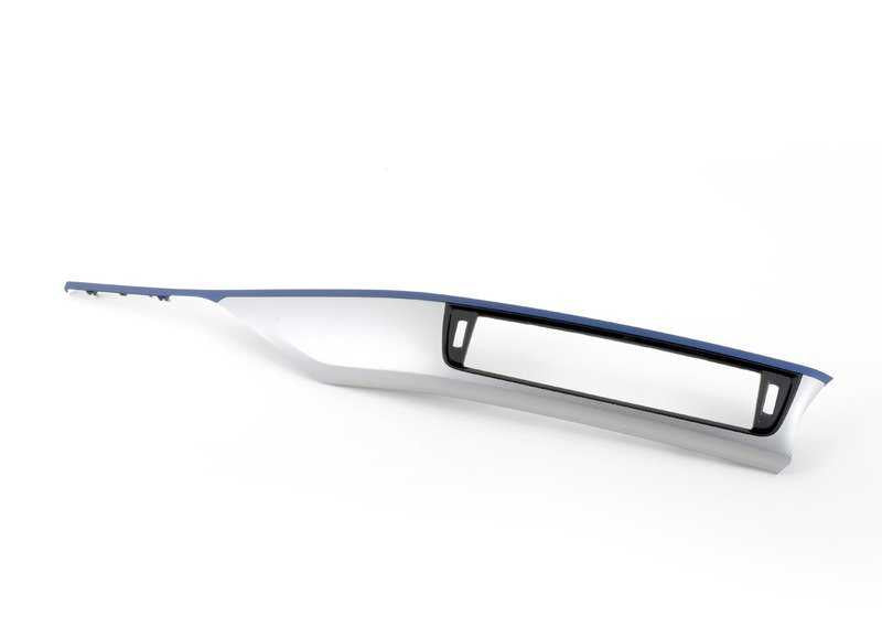 This genuine BMW dashboard trim is designed to add a stylish and sporty touch to your vehicle. Finished in matt blue Hexagon aluminium, it is ideal for the BMW 3 Series and 4 Series models. This accessory is placed on the dashboard and is compatible with left-hand drive vehicles.