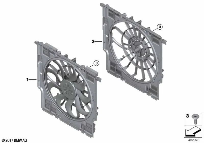 Fan housing with fan for BMW 2 Series G42 3 Series G20, G21, G28 4 Series G22, G23, G26 (OEM 17428591441). Original BMW