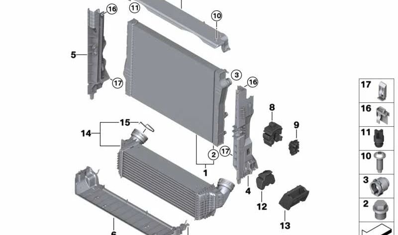 INTERCOOLER OEM 17518570448 for BMW F15 and F16. Original BMW piece. Ideal to improve the performance of the air admission system in your vehicle.
