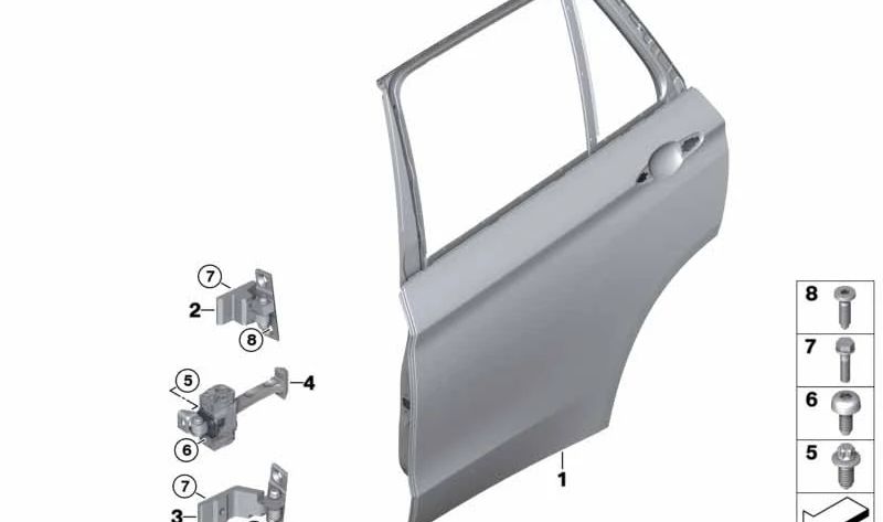 This component is essential to maintain the proper functioning and alignment of the rear doors of these BMW models. Manufactured under BMW quality standards, it guarantees a perfect adjustment and exceptional durability.