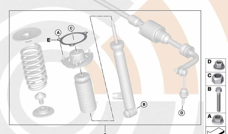 This set is essential to ensure that the rear shock absorber of your vehicle is correctly installed and works optimally. Ideal for owners who wish to maintain their BMW with original pieces to guarantee the best performance and safety.