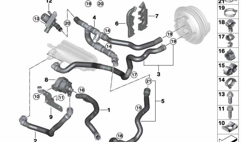 This nozzle is part of the cooling water hose system, ensuring adequate flow and preventing engine overheating. It is crucial for the efficient maintenance of your MINI vehicle.