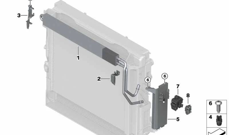 This support ensures that the assisted steering radiator remains in place, working efficiently and contributing to the durability of the BMW vehicle steering system.