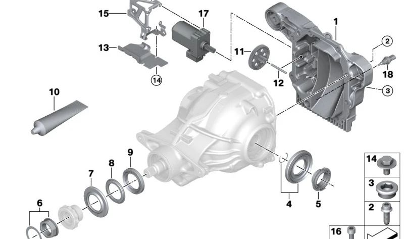Rear cover of the OEM differential 33118677753 for BMW G42, G20, G21, G22, G23, G26, G29. Compatible with versions 230i, M240i, 320d xDrive, 320i. Original BMW.