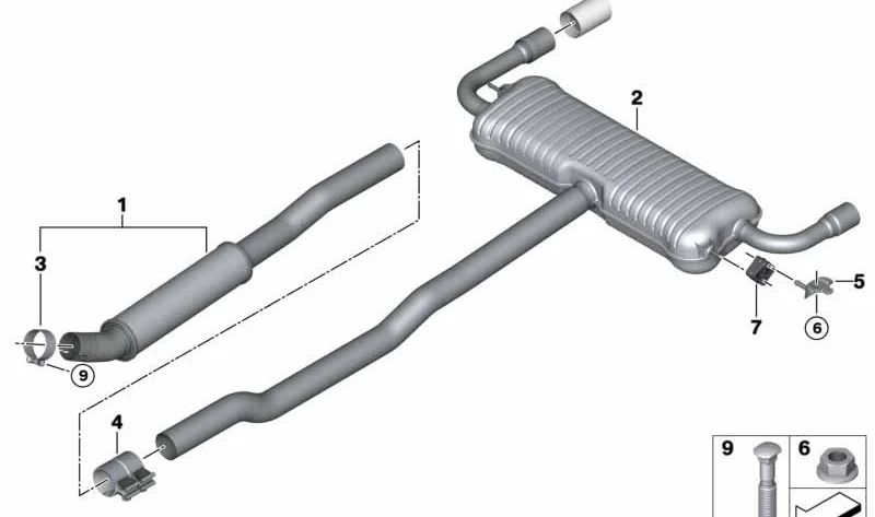 It is an essential component of the exhaust system, which helps reduce noise and vehicle emissions, while maintaining the optimal engine performance. This quiet rear is a reliable and lasting piece, ideal for maintaining quality and efficiency in your BMW.