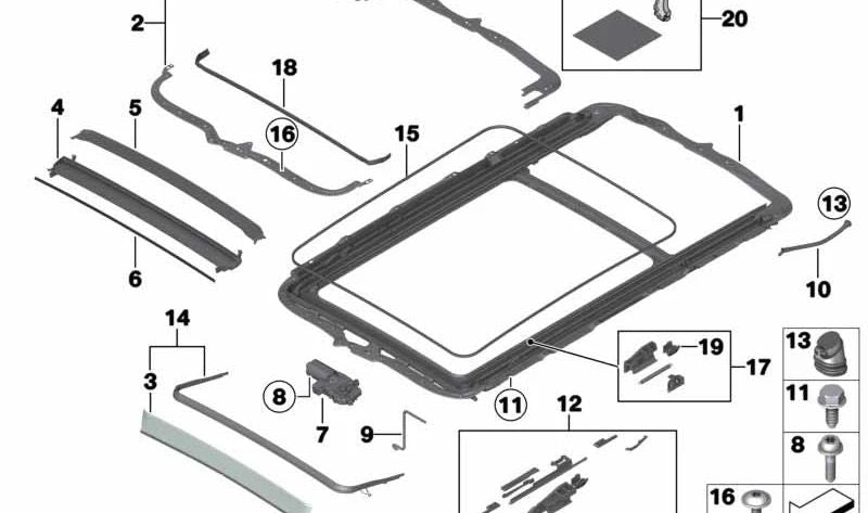 SOLAR ROOF MECHANISM 54107198762 FOR BMW E70, E71, F15, F85. Original BMW.