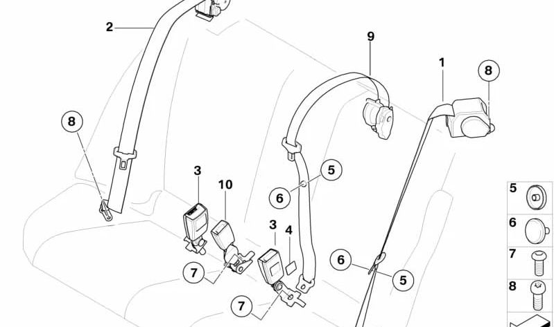 Este cinturón de seguridad es una pieza esencial para reemplazos en la parte trasera central del vehículo, asegurando la máxima seguridad para los pasajeros traseros. Fabricado con los más altos estándares de calidad propios de BMW, garantiza un ajuste perfecto y un funcionamiento fiable.