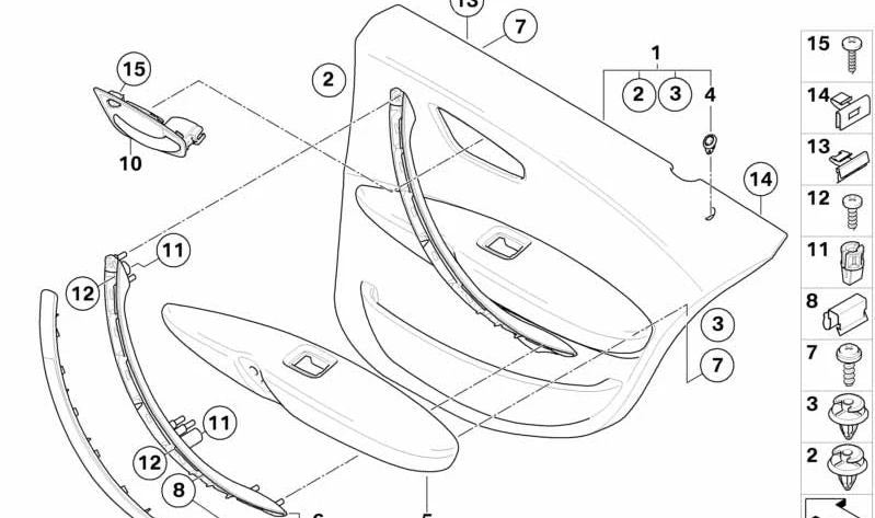 Descripción: Este embellecedor de puerta interior está diseñado específicamente para modelos BMW de la serie 1. Está fabricado en aluminio glaciar plateado, un material que añade un toque elegante y moderno al interior del vehículo. Es un producto original BMW, asegurando la calidad y el ajuste perfecto en el coche.