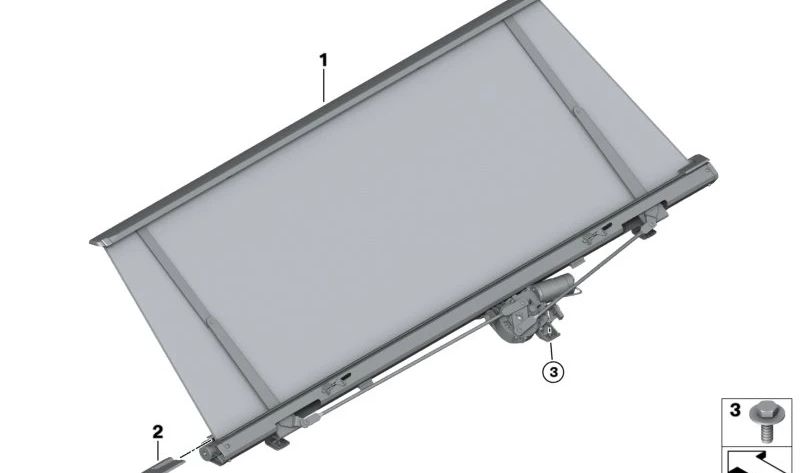 Parasolar enrollable para luneta trasera OEM 51465A36F87 para BMW G60 (520d, 520d xDrive, 520i, 523d, 523d xDrive). Original BMW.