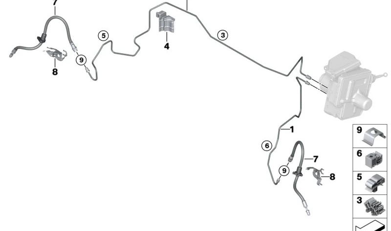 Tubo de freno OEM 34308838529 para BMW {U06} y MINI {U25}. Original BMW y MINI.