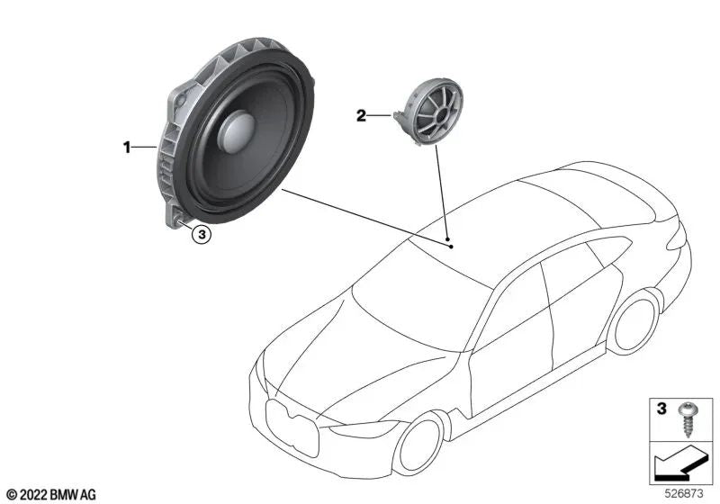 Altavoz de medios del sistema Top-HiFi para BMW F40, F44, G42, G87, G20, G21, G28, G80, G81, G22, G23, G26, G82, G83, G30N, F91, F92, F93, G14, G15, G16, G29 (OEM 65132622469). Original BMW