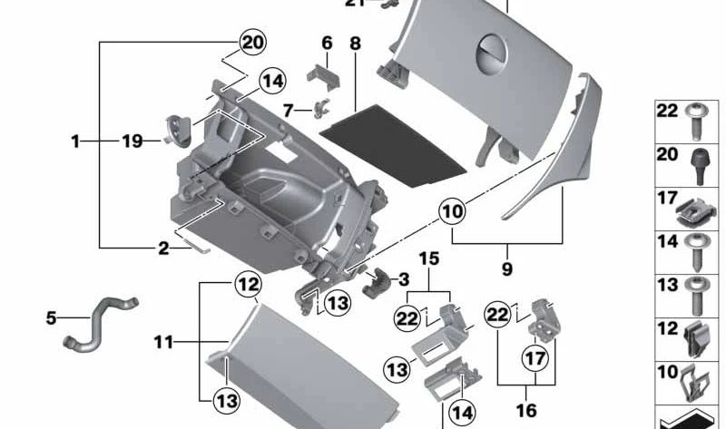 Caja del guantera OEM 51169801438 para MINI R60 y R61 {Cooper, Cooper S, Cooper D, Cooper SD, ALL4}. Repuesto original MINI.