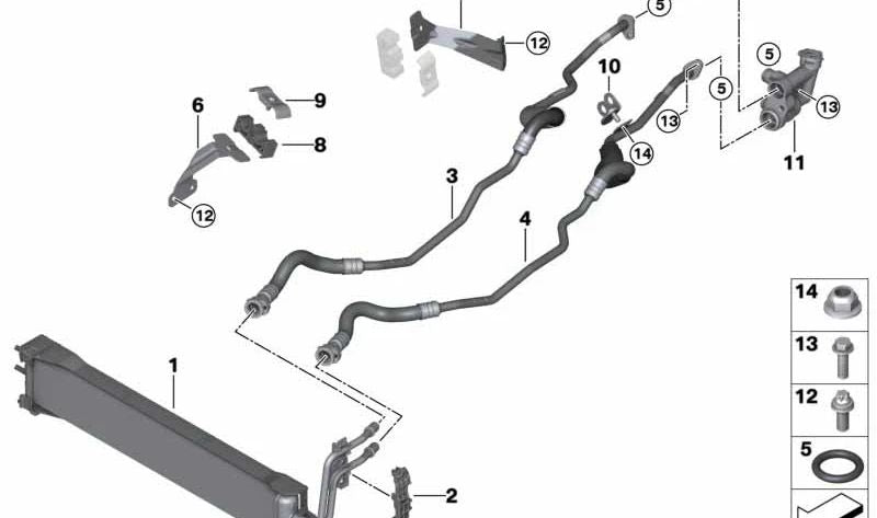Presentamos la Conducción del enfriador de aceite de transmisión de avance, un componente esencial para mantener el sistema de transmisión de tu BMW en óptimas condiciones. Fabricado con los más altos estándares de calidad, este producto original BMW asegura la máxima eficiencia y durabilidad.