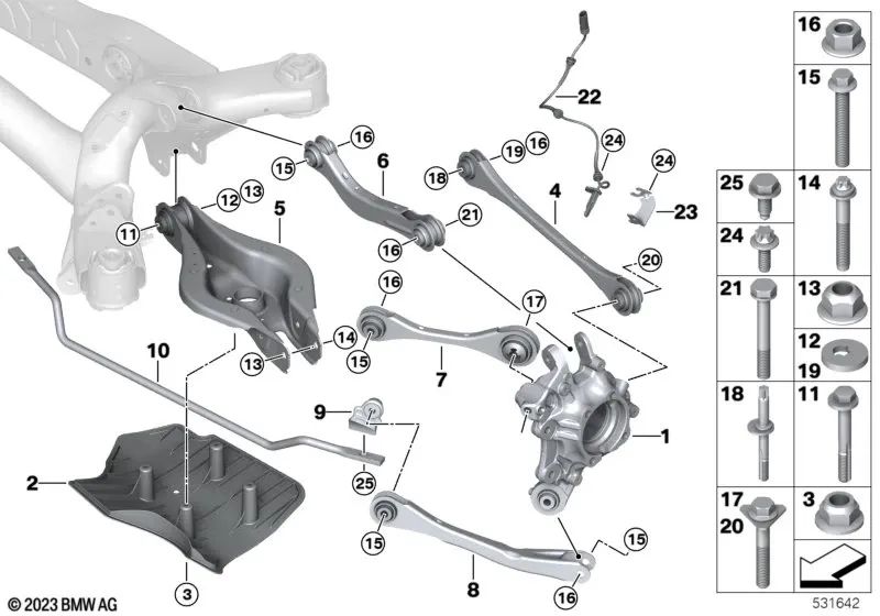 Soporte diferencial trasero OEM 33306876803 para BMW G20, G21, G22, G23, G26, G29... y más. Original BMW.