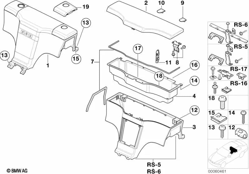 Cubierta de caja de almacenamiento izquierda para BMW Serie 3 E46, Serie 5 E39 (OEM 51168400259). Original BMW.