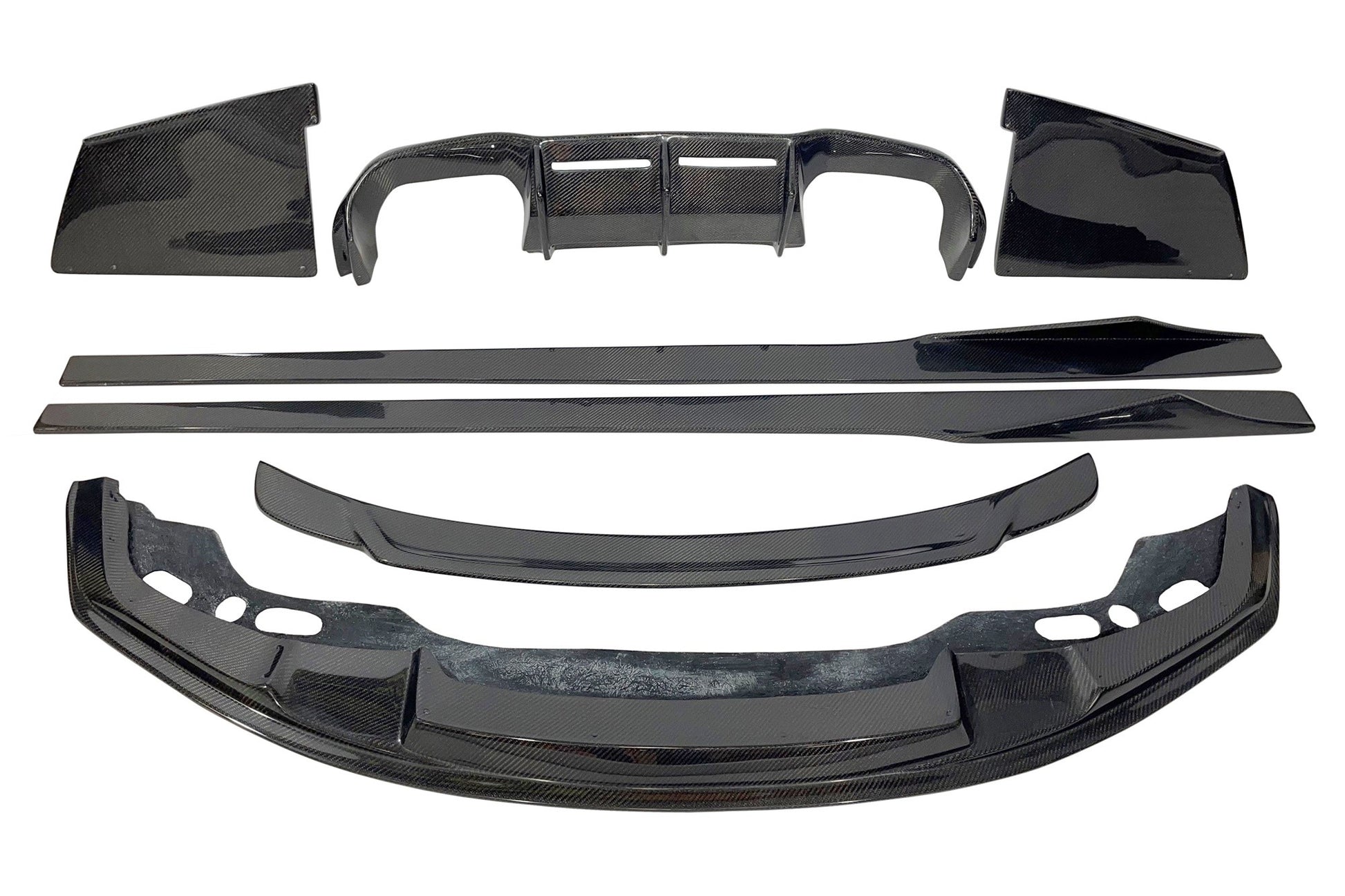 Este excepcional kit está compuesto por un spoiler delantero, un difusor trasero, un alerón y difusores de taloneras, todos fabricados en fibra de carbono de primera calidad. La fibra de carbono no solo garantiza una alta resistencia y durabilidad, sino que también contribuye a la reducción de peso del vehículo, mejorando así su rendimiento en carretera. Cada pieza ha sido diseñada para ofrecer un acople perfecto, asegurando una integración sin esfuerzo y una instalación rápida.