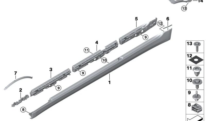 Esta tira de sujeción izquierda es un accesorio esencial para su BMW, diseñada con precisión y calidad por la marca original BMW. Ideal para modelos como el F90, G30, y G31, garantiza una instalación segura y ajuste perfecto.