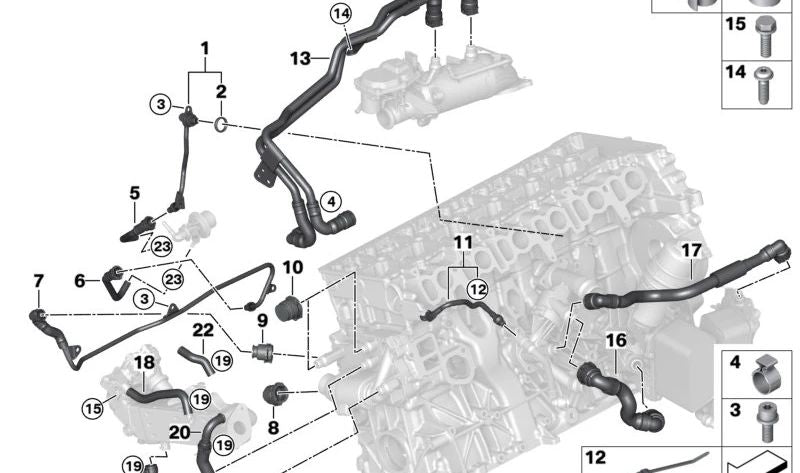 Esta es una pieza original BMW utilizada para el sistema de refrigeración del turbocompresor, asegurando un rendimiento óptimo y la protección del motor en condiciones de alta exigencia.