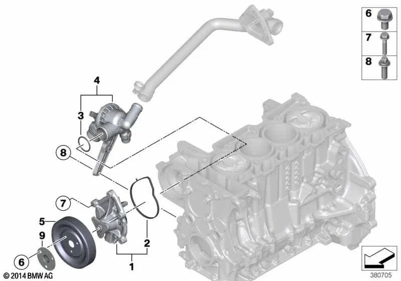 Cobertura de la rueda de transmisión de la bomba de refrigerante para BMW F20, F21, F30, F31, F35 (OEM 11518630448). Original BMW