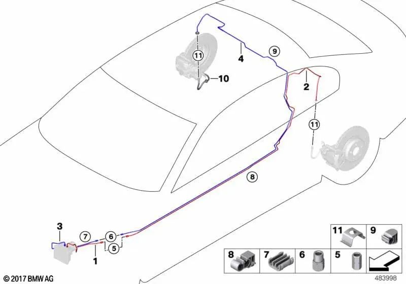 Pieza de unión OEM 34326874042 para BMW Serie 5 F90 M5, G30, G31 Touring, Serie 6 G32 GT, Serie 7 G11, G12... y más. Original BMW.