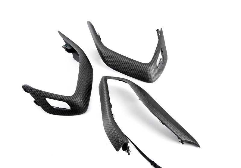 Juego molduras interiores carbono OEM 51952412960 para BMW I12 (i8 Coupé y Roadster). Compatible con todos los modelos BMW i8. Acabado en fibra de carbono original BMW.