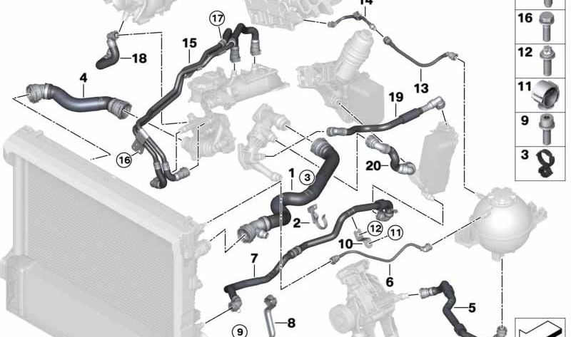 Manguera de culata a vaso de expansión OEM 17128577061 para BMW G01, G02. Original BMW.