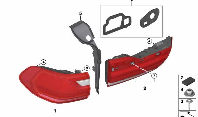 Piloto trasero derecho LED maletero OEM 63215A164A2 para BMW X7 {G07, xDrive30d, xDrive40d, ALPINA XB7}. Luz trasera original BMW.