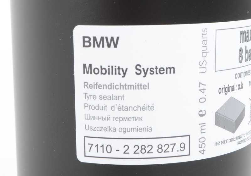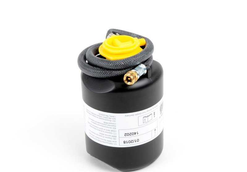 Botella de sellador de neumáticos para BMW F87, F87N Serie 2, F80, F80N Serie 3, F82, F82N, F83, F83N Serie 4, F10 Serie 5, F06, F06N, F12, F12N, F13, F13N Serie 6, G12 Serie 7, F25 X3, F26 X4, F15, F85 X5, F16, F86 X6 (OEM 71102282827). Original BMW