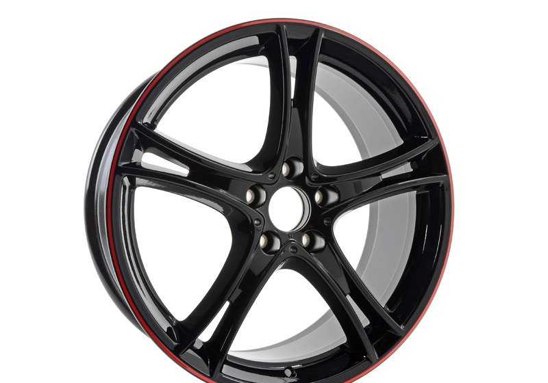 - Llantas negras con aro rojo