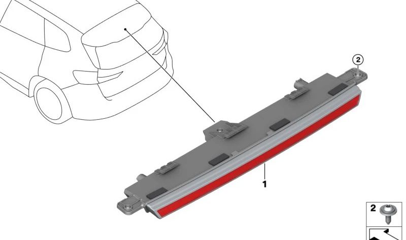 Luz de freno tercera OEM 63258494354 para BMW U06, G61, U11, U12, G45, U25. Original BMW.