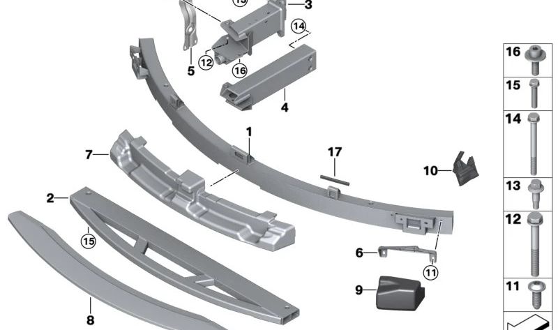 Soporte delantero del parachoques OEM 51117336208 para BMW F30, F31, F32, F33, F34, F35, F36, F80. Original BMW.