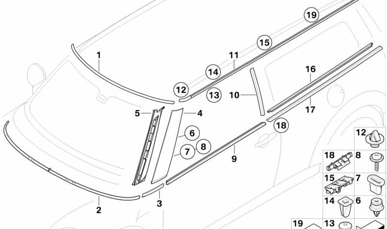 Tornillo alomado para chapa OEM 51472758362 para MINI Clubman R55, R55 LCI. Original MINI.