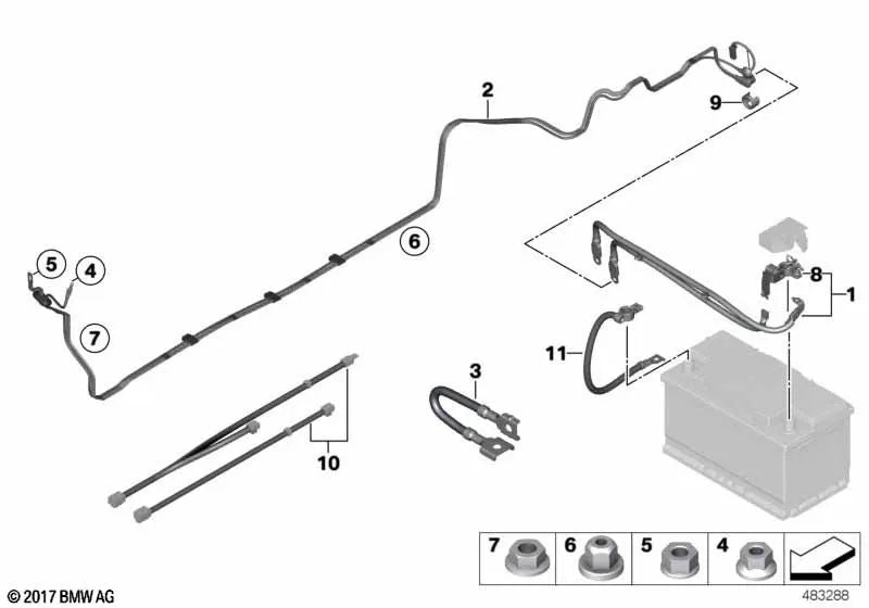 Câble de réparation B + pour la série BMW 3 F30, F31, F34, F80; 4 Série F32, F33, F36, F82, F83 (OEM 61129387649). BMW d'origine.
