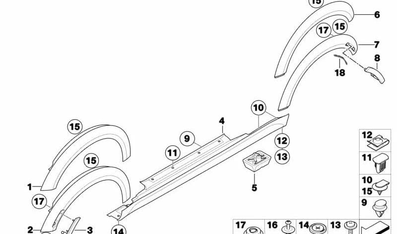 Couvercle latéral en bas à gauche (étrier) OEM 51777147915 pour Mini R56, R57, R58, R59. Mini d'origine.