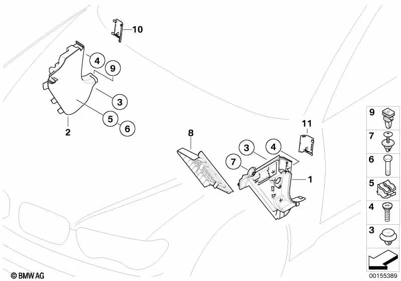 Couvre-côté avant droit pour la série BMW 7 E65, E66 (OEM 51437013804). BMW d'origine