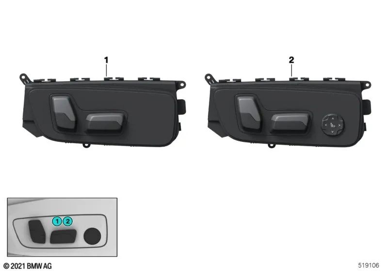Interrupteur de réglage du siège gauche pour BMW G42, G87, U06 Series 3 G20, G20N, G21, G21N, G28, G80, G81, série 4 G22, G23, G26, G82, G83, 5 F90N Series, X1 U11, X3 F97, F97N , G01, G01N, G08, X4 F98, F98N, G02, G02N (OEM 61319390117). BMW d'origine.