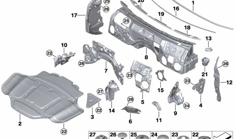 Description: Isolateur acoustique pour la paroi du compartiment moteur. Compatible avec le moteur LHD N63. BMW Original, garantissant une qualité et un ajustement parfait.