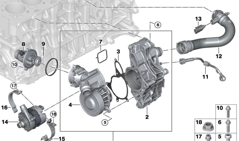 Pompe à eau avec support OEM 11518054857 pour BMW G87, G20N, G21N, G80, G80N, G81, G81N, G26, G82, G82N, G83, G83N, F97, F97N, F98, F98N. BMW d'origine.