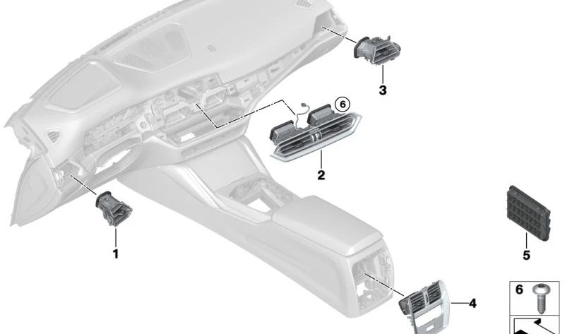 Grid di ventilazione lato passeggero per BMW G42, G87, G20, G21, G28, G80, G81, G22, G23, G26, G82, G83 (OEM 64226848620). BMW originale