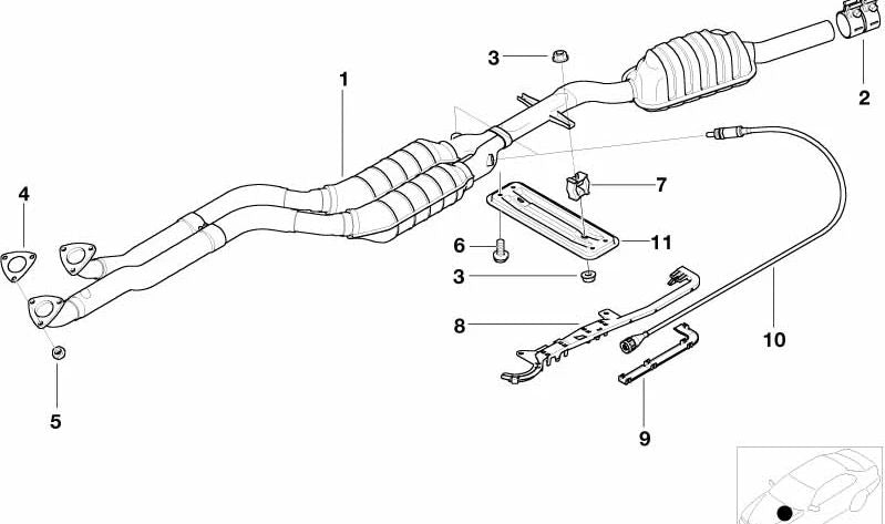 Questa guida via cavo è un componente essenziale situato nel sistema di scarico. Fa parte della connessione con il catalizzatore, il silenziatore anteriore e altri elementi della linea di scarico come la sonda Lambda.